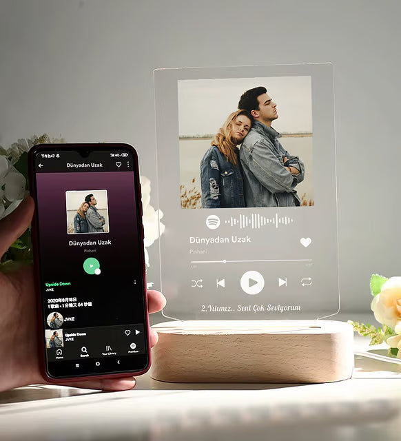 Kişiye Özel Işıklı Spotify Plak Ahşap Kaide Gece Led Lambası