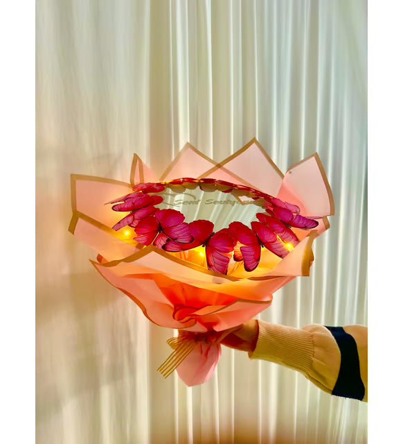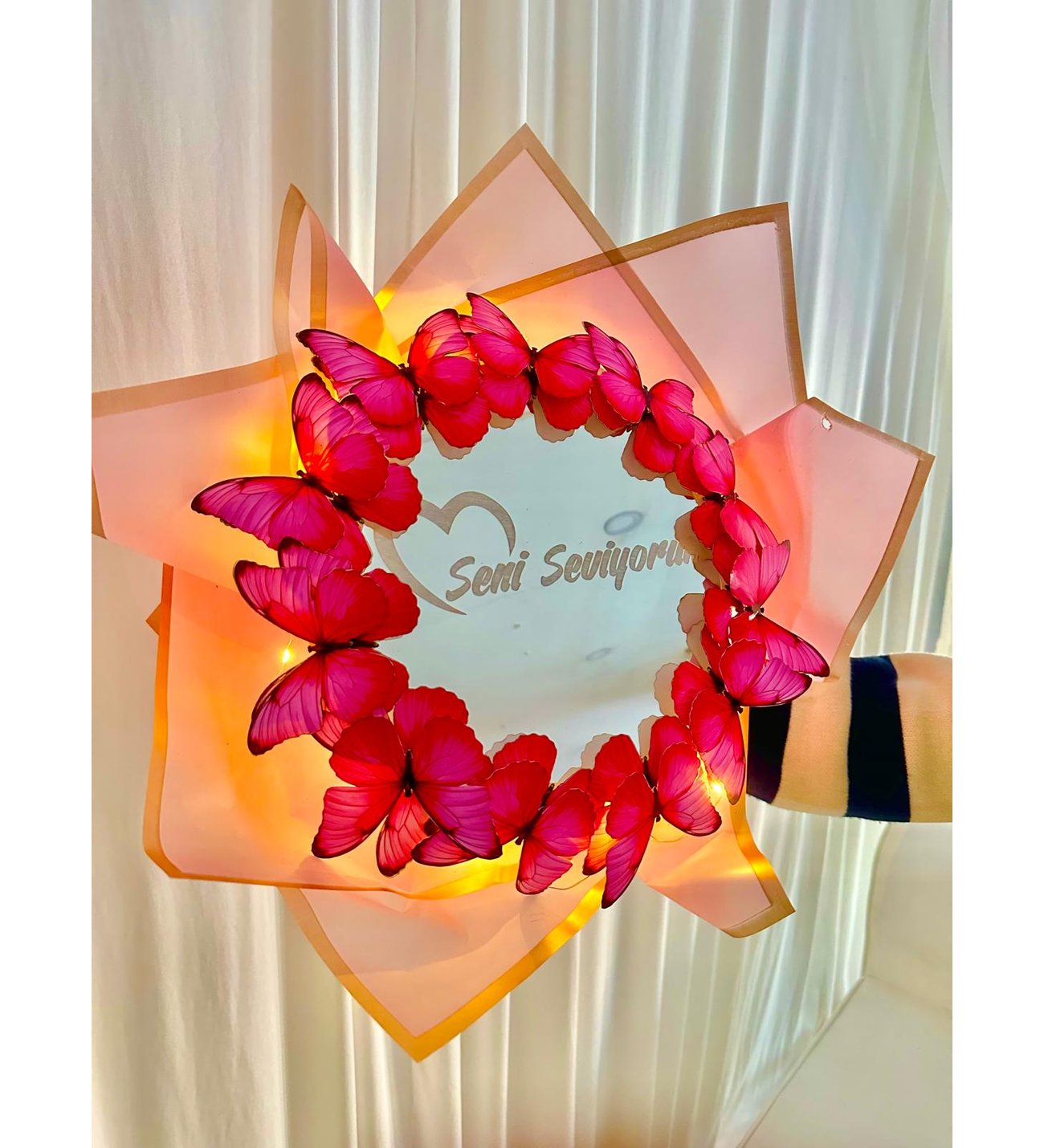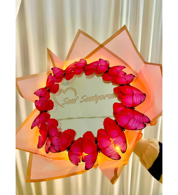 Seni Seviyorum Aynalı Pembe Kelebek Buketi